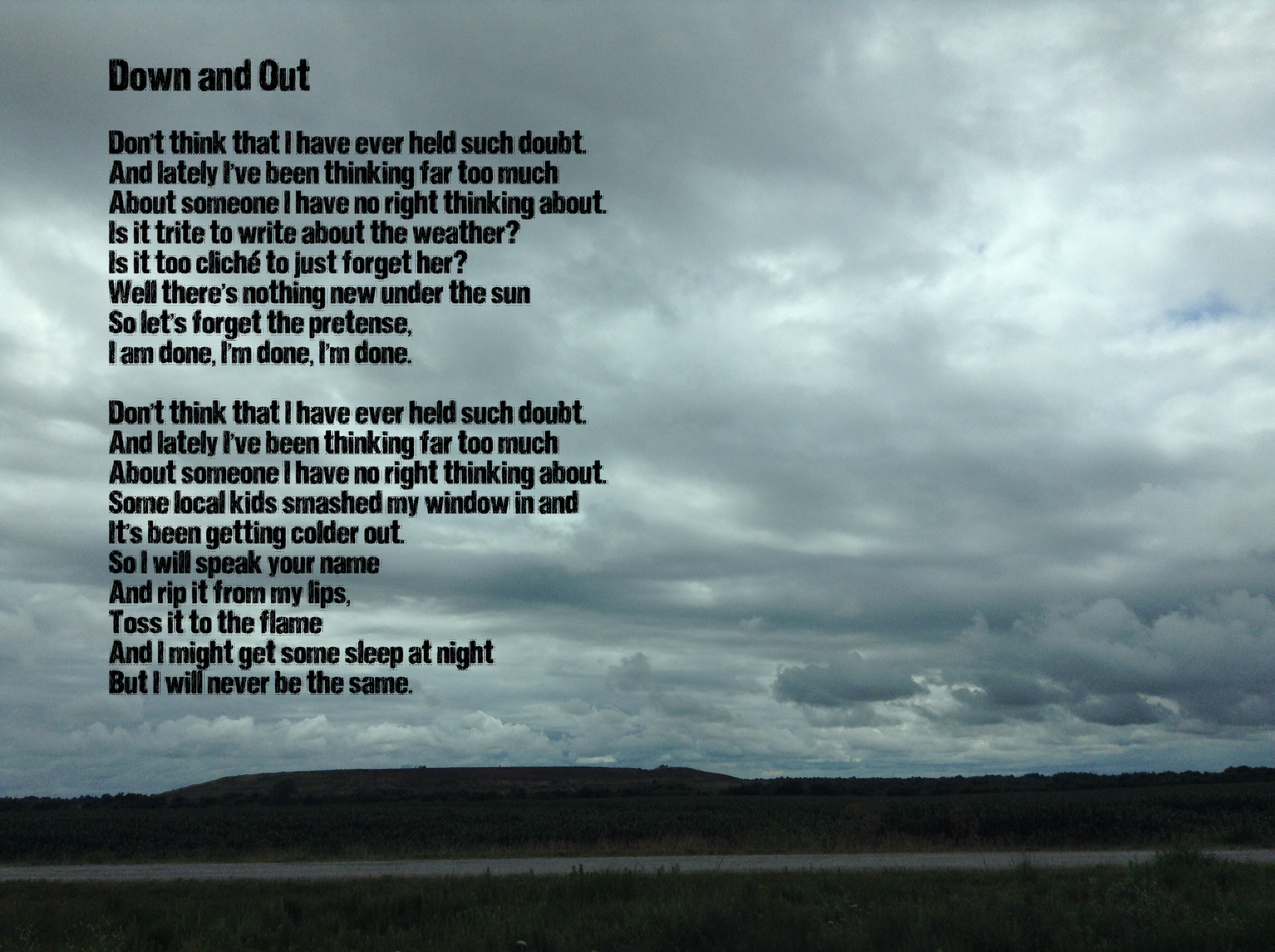 This Can’t Be All There Is was originally intended to be both a poetry book and a fully recorded spoken-word album. I’ve dabbled in the idea in the past, but this time, I got close. Every song was demoed, and most of them were completely finished, save for a few touch-ups, and one major aspect: the vocals. I never was able to get my voice to a place I liked or could even stand.